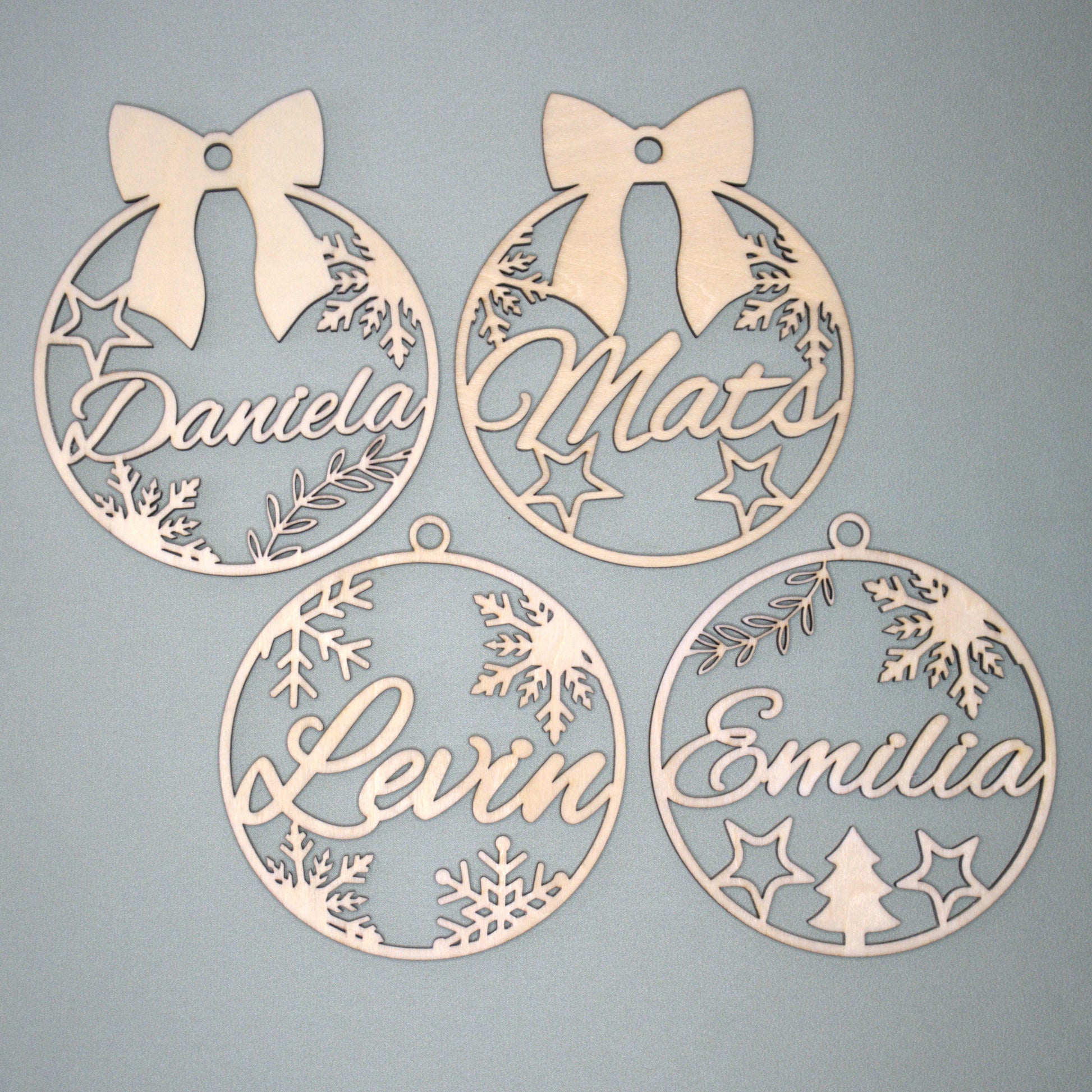 Diese liebevoll gefertigten Weihnachtsanhänger aus Holz werden individuell mit deinem Wunschnamen personalisiert und bringen eine persönliche Note an deinen Weihnachtsbaum.