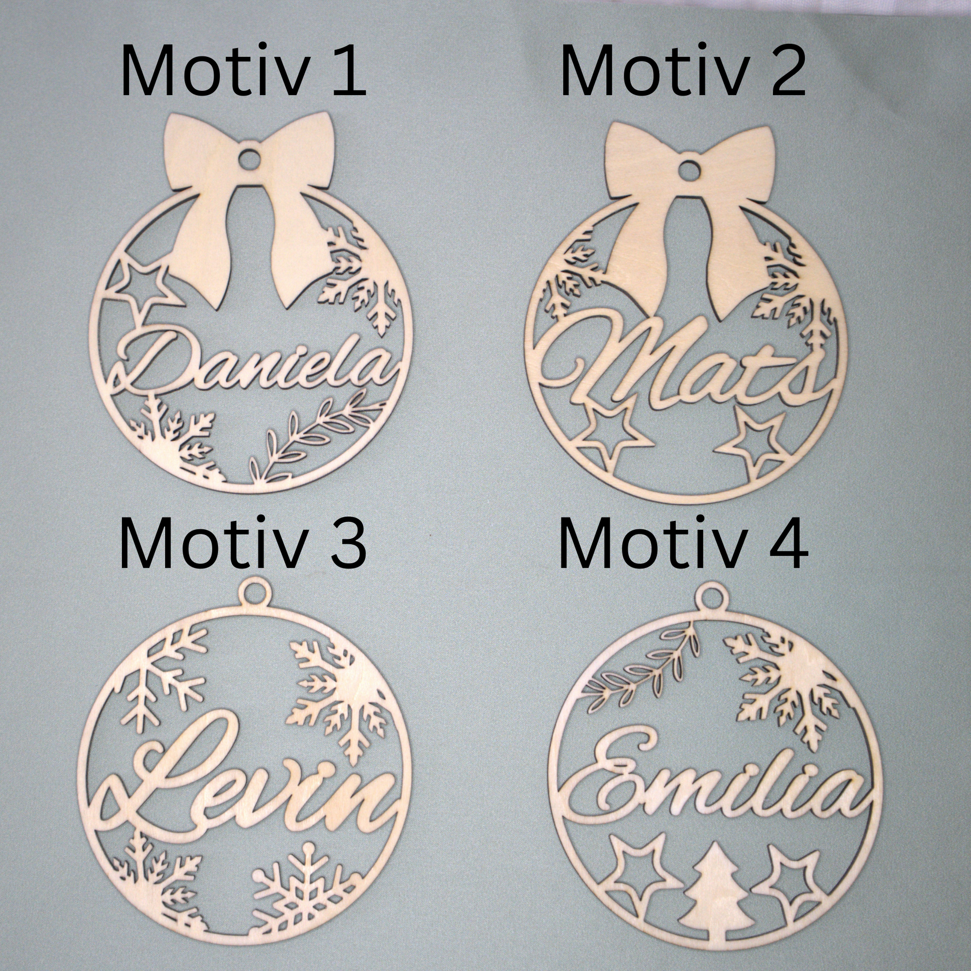Personalisierter Weihnachtsbaumanhänger aus Holz | 4 Motive zur Auswahl